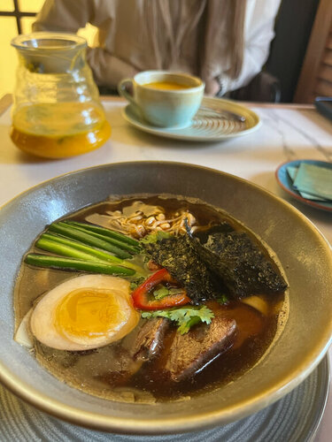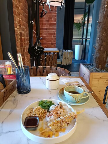 Очень приятное тихое спокойное и очень уютное место. Приятная музыка, доброжелательные люди здесь работают. Еда всегда вкусная и красиво сервирована. Спасибо 🙏