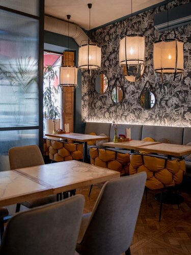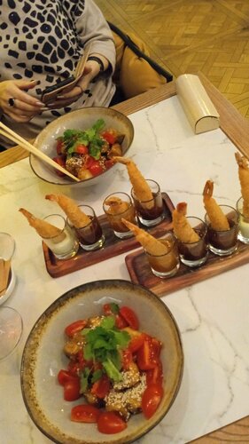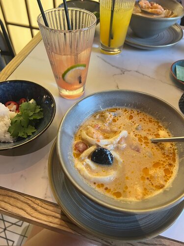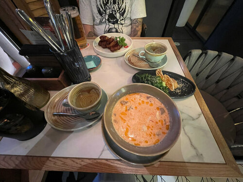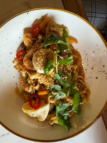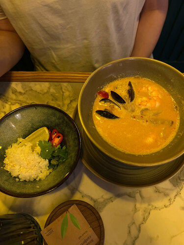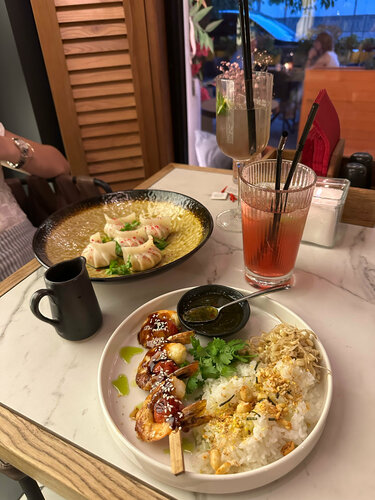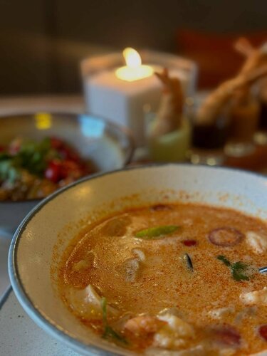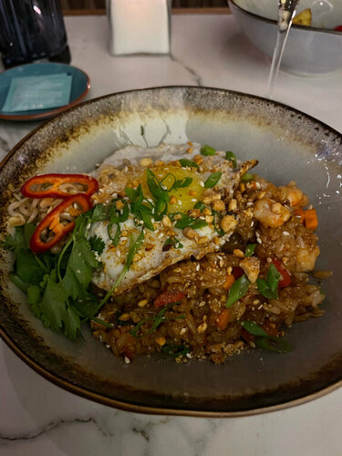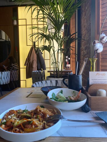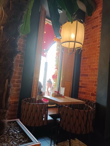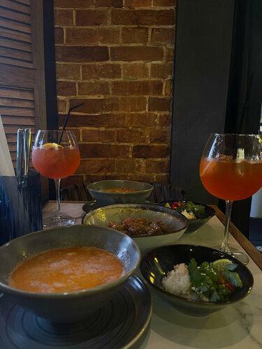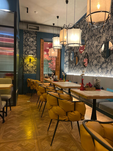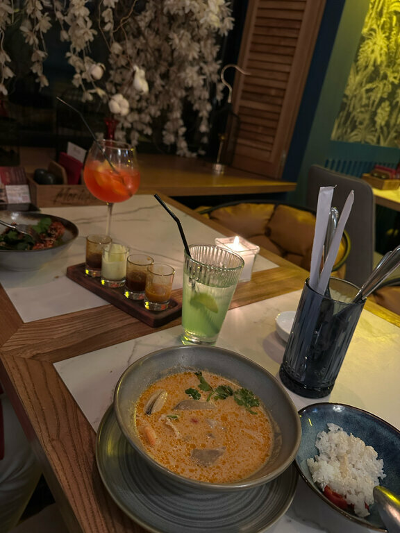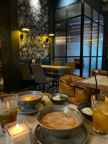 Больше всего конечно понравились блюда😍😍 это место стало первым, где мне понравились овощи, также подтверждаю, что том ям действительно очень хороший. Очень понравился сервис, ни где не видела, чтобы клали жевачки. Интерьер приятный и фотогеничный, есть живые попугайчики. Туалет чистый и опрятный. В общем придраться не к чему.