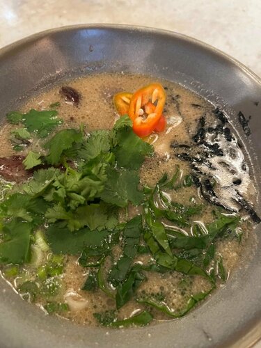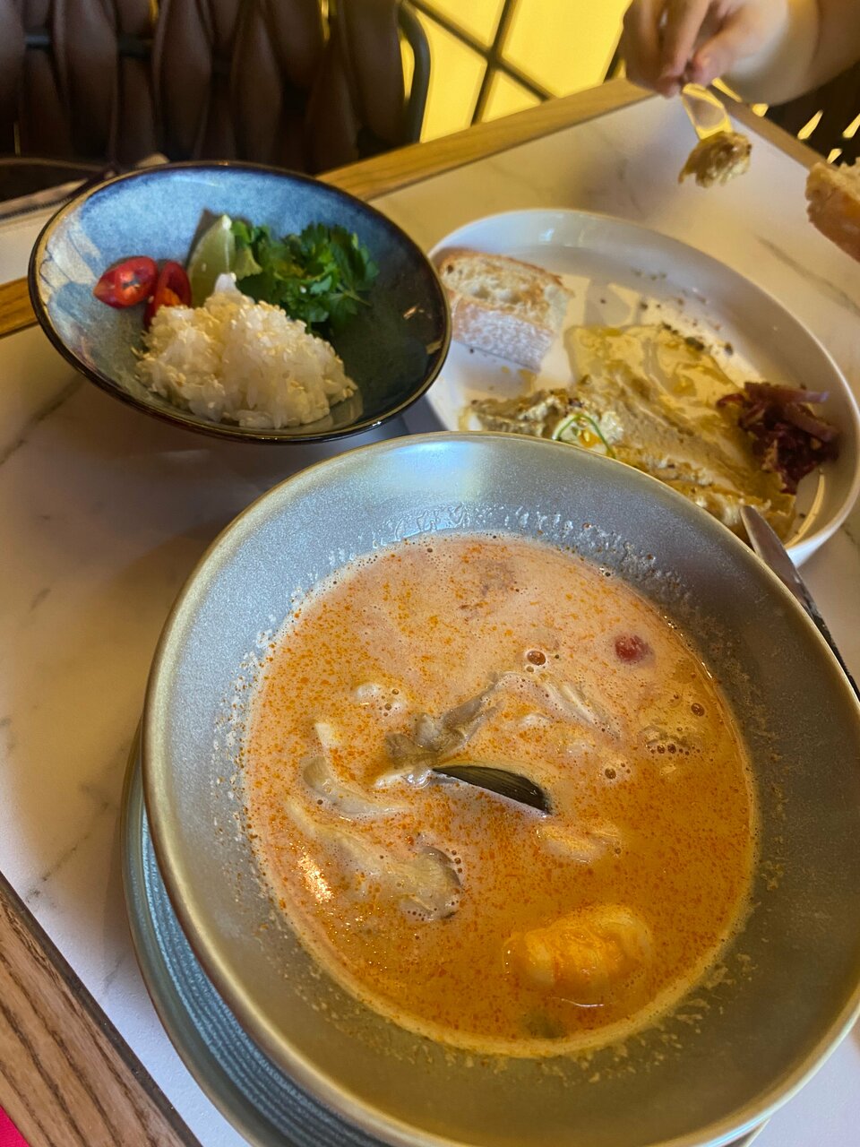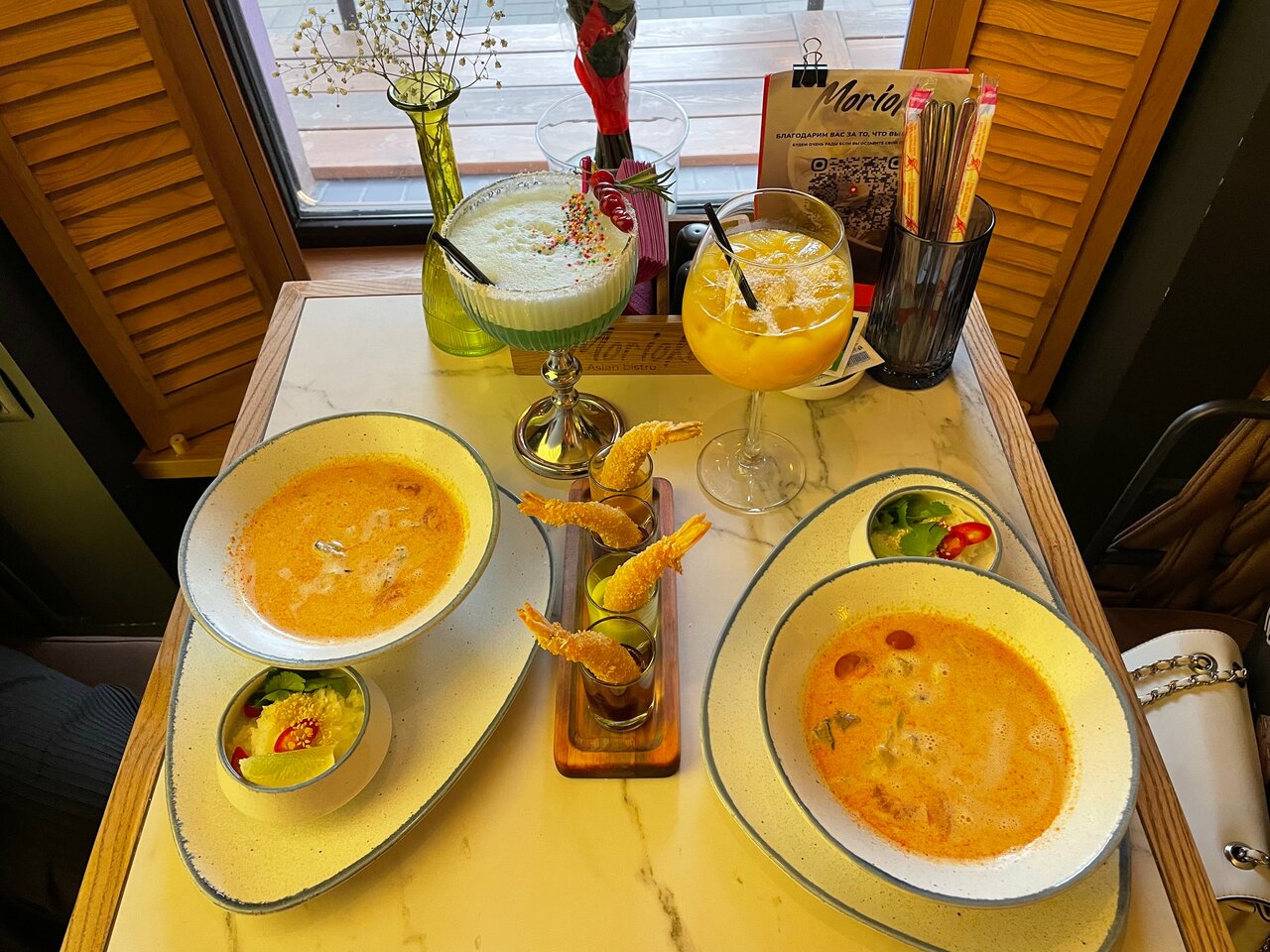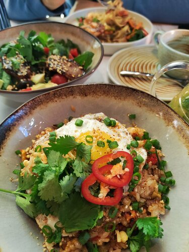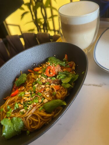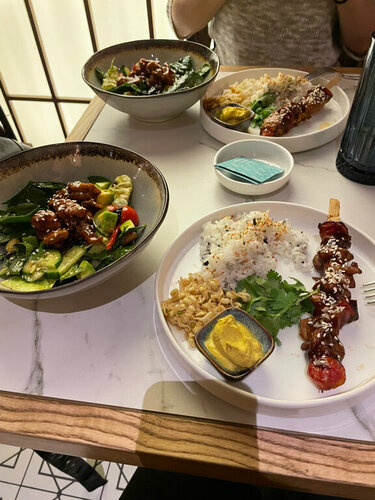 Больше всего конечно понравились блюда😍😍 это место стало первым, где мне понравились овощи, также подтверждаю, что том ям действительно очень хороший. Очень понравился сервис, ни где не видела, чтобы клали жевачки. Интерьер приятный и фотогеничный, есть живые попугайчики. Туалет чистый и опрятный. В общем придраться не к чему.