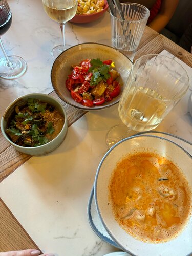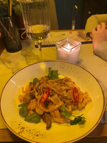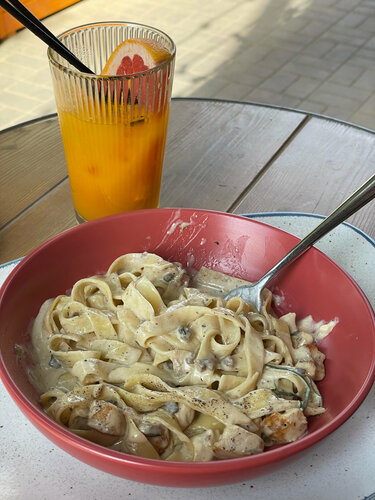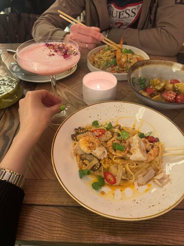 Мое любимое место, захожу сюда и с подружкой и с мч. На любой повод. Тут вкусно вообще все. Даже обычные «битые огурцы», я не знаю, как повара их избивают, но я готова закрывать глаза на это ради великолепного вкуса на выходе. А сливочная паста с угрем? Это вообще законного ? В общем любая позиция из меню нереально вкусная. Так же очень приятный сервис и внимательные работники. Поставила бы 10🌟 но есть только 5 😭